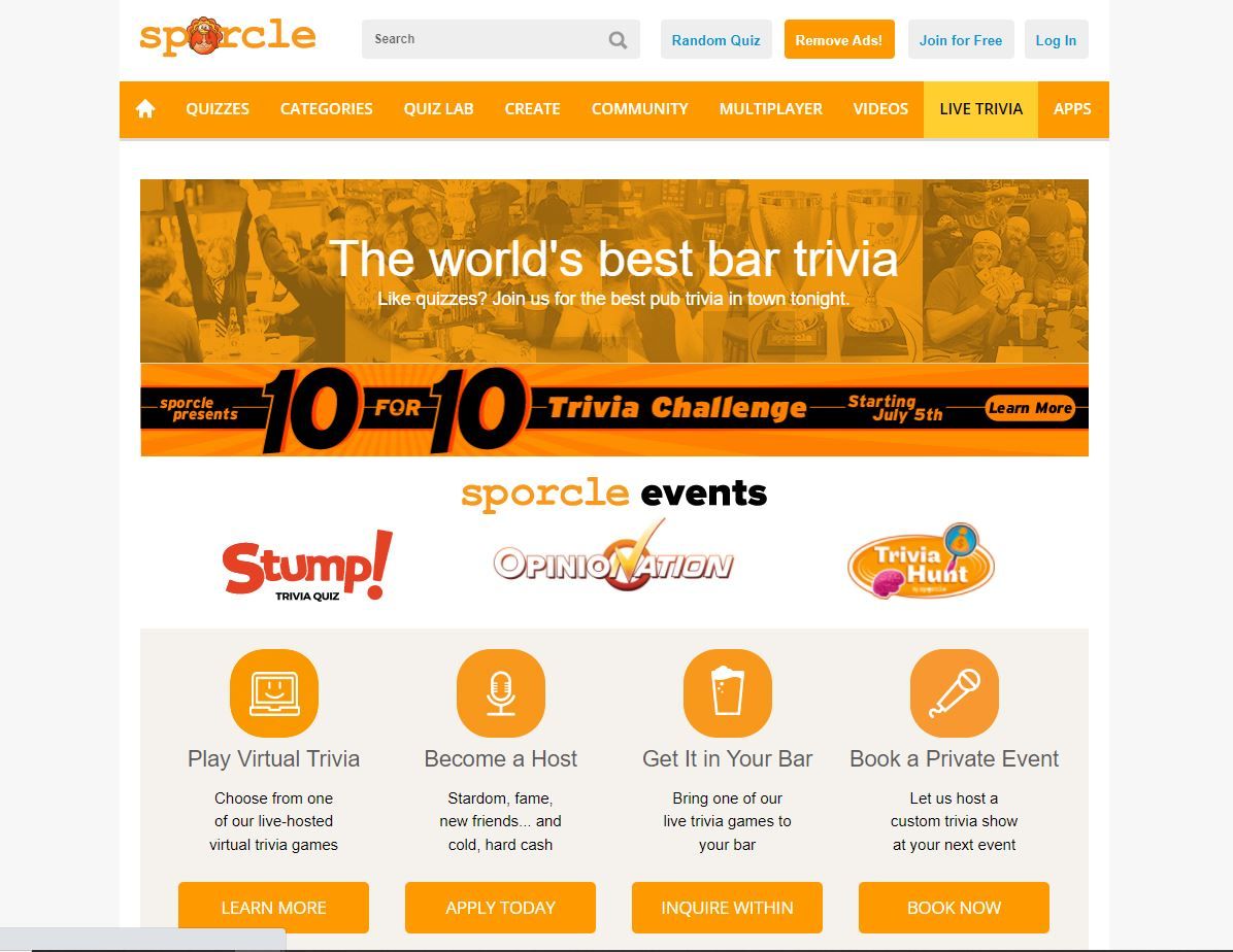With Sporcle, you and your remote team can grab a drink of choice and do a virtual trivia night from the comfort of your home. Sporcle is an excellent virtual trivia night option where you can sign up for a time slot, invite your colleagues, and meet on a Zoom call. They even provide players with the opportunity to win prizes, making it an exciting event for everyone to enjoy and potentially win something.