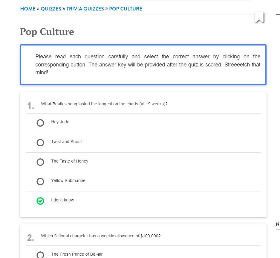 Queendom has a massive archive filled with quizzes, tests, polls, and more. If you click on the Trivia section, you will see a significant number of categories and subcategories. All you need to do is select a particular quiz to host. Some categories you can expect from Queendom include gaming facts, world capitals, greek mythology, American history, food, famous couples, and many more. Once you’ve hosted the trivia content, share your screen and get started on answering those questions.