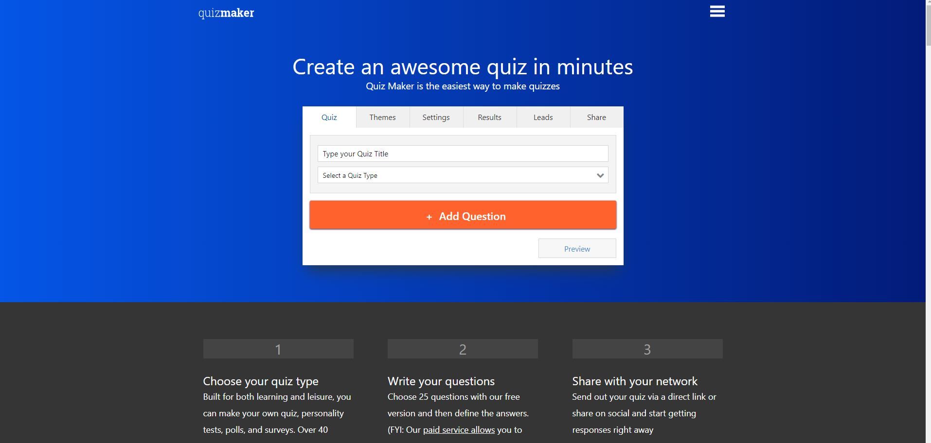 If you are interested in creating a virtual trivia game to test your remote team's knowledge about your organization or industry, Quizmiaker has you covered. Users can customize their quiz to the font with their web client. Select from varying themes and backgrounds, or upload your own background for an enjoyable surprise. When you are ready to start the game, share the screen with the rest of your remote team. Once everyone has a view of the screen, make them choose the correct answers and choose it for them when they answer.